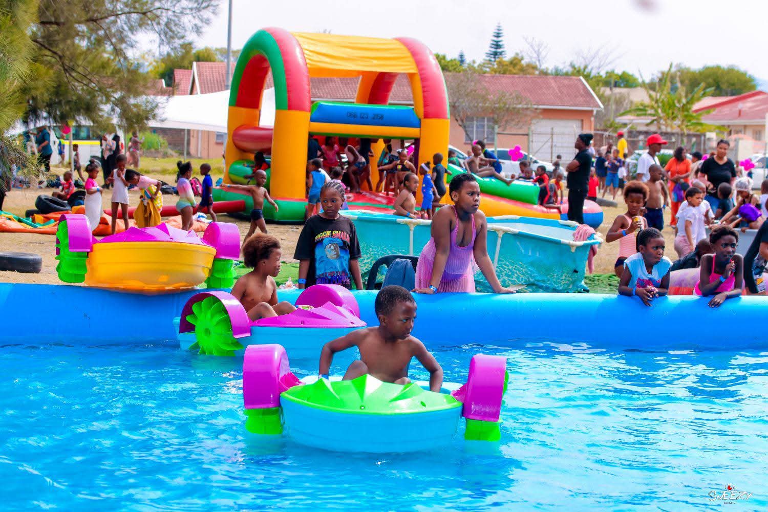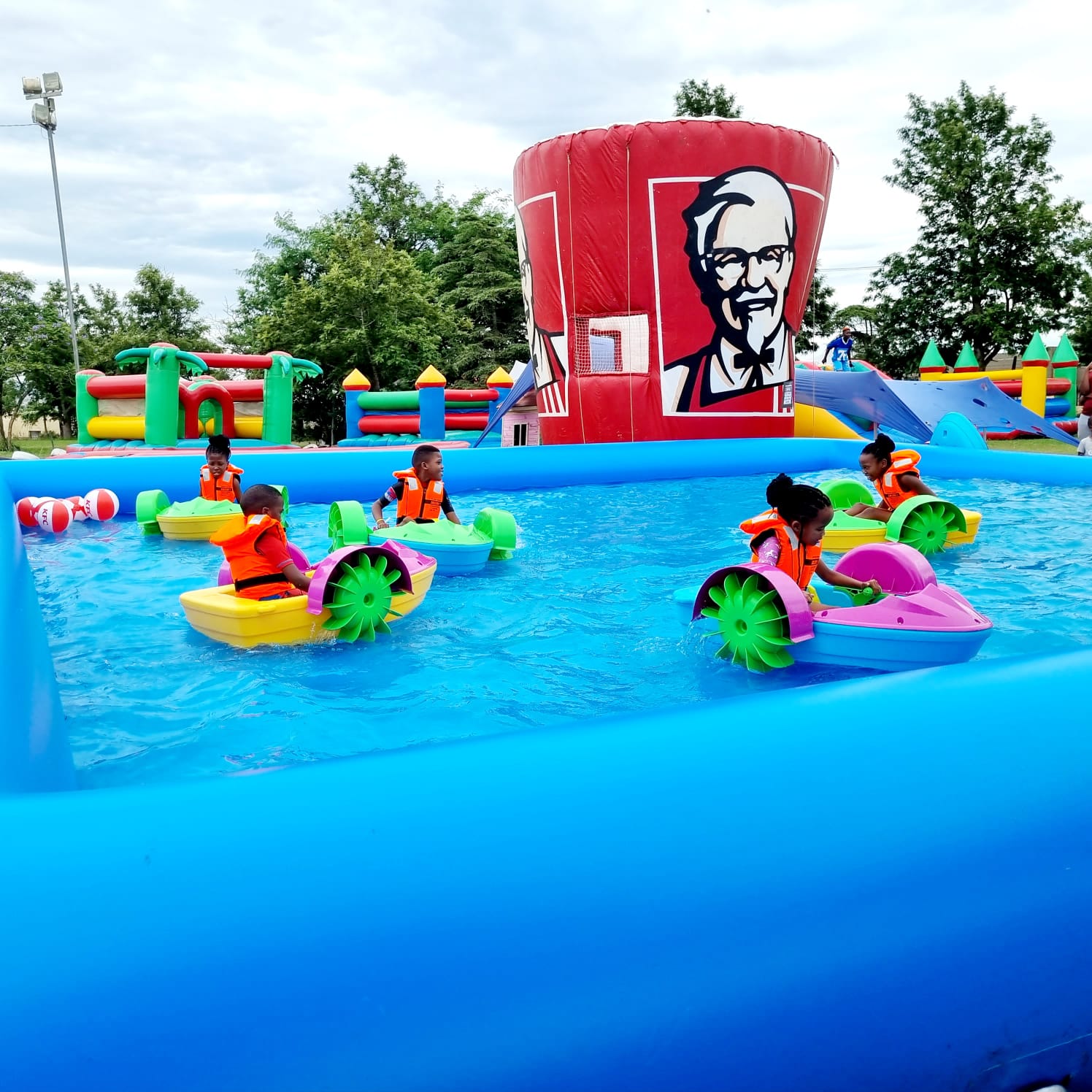 Splash pool with paddle boats, a guaranteed summer party hit for any backyard.